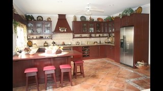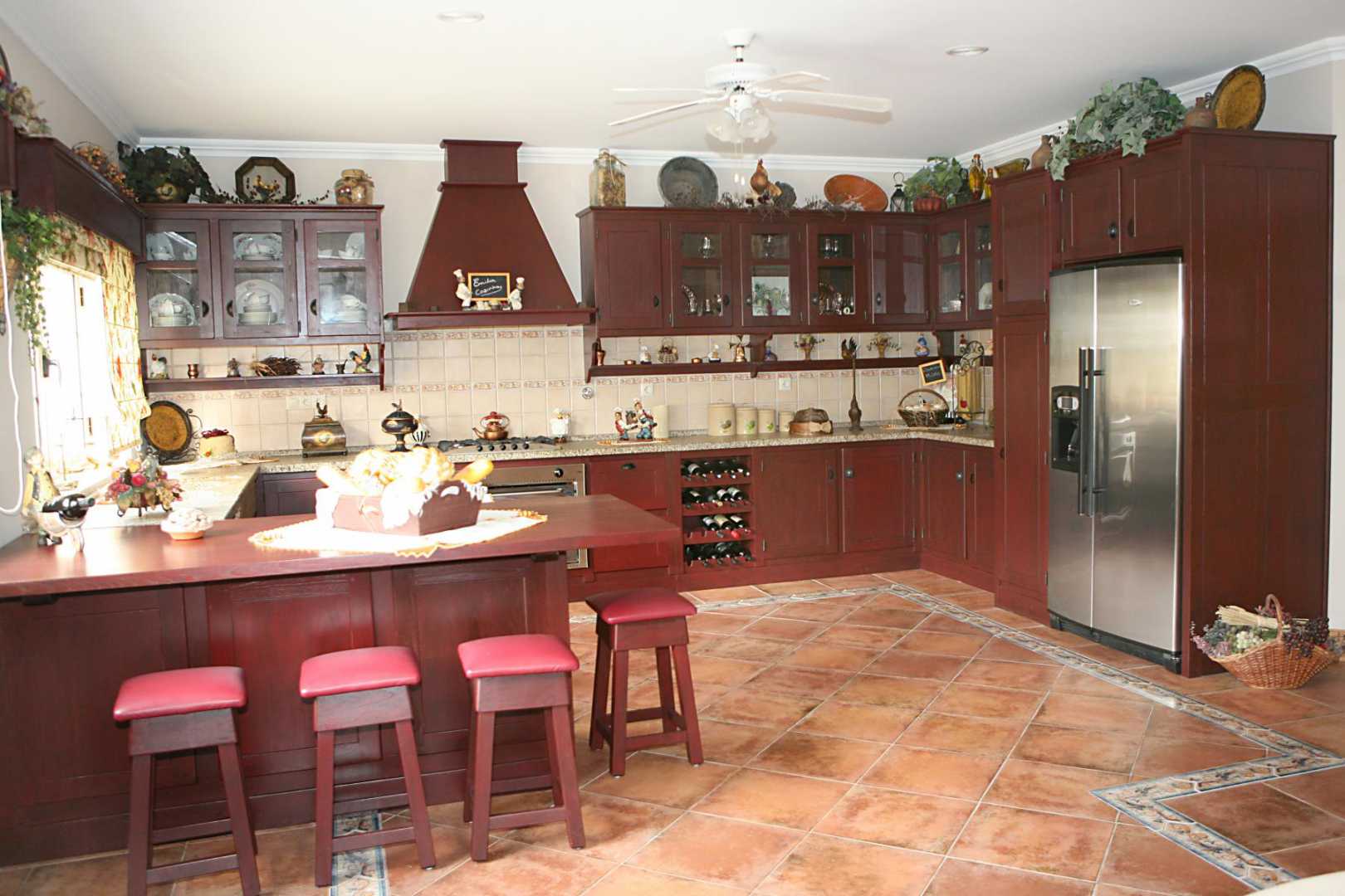 Cozinha com partes frontais em madeira de castanho Maciço.