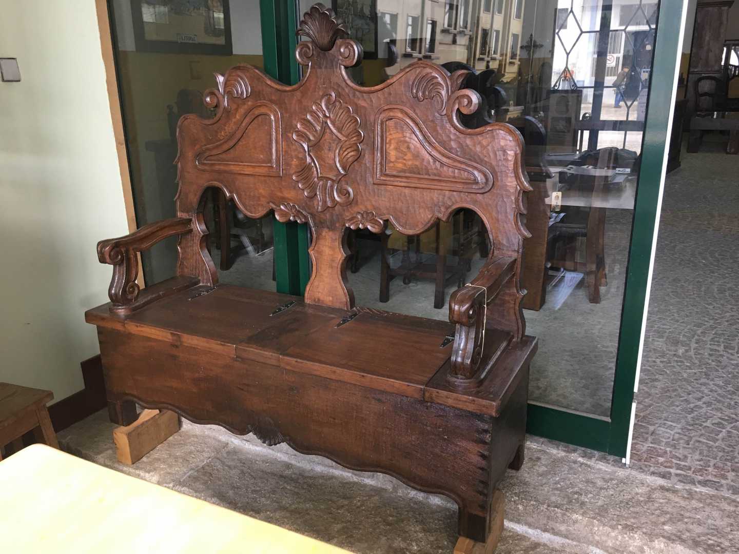 Fabrico artesanal em madeira de castanho Medidas: 150x50x135altura